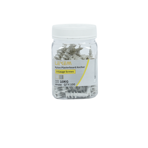 Nylon plasterboard anchors are essential fastening solutions for securing fixtures to hollow wall cavities. The 8mm size accommodates standard wall...